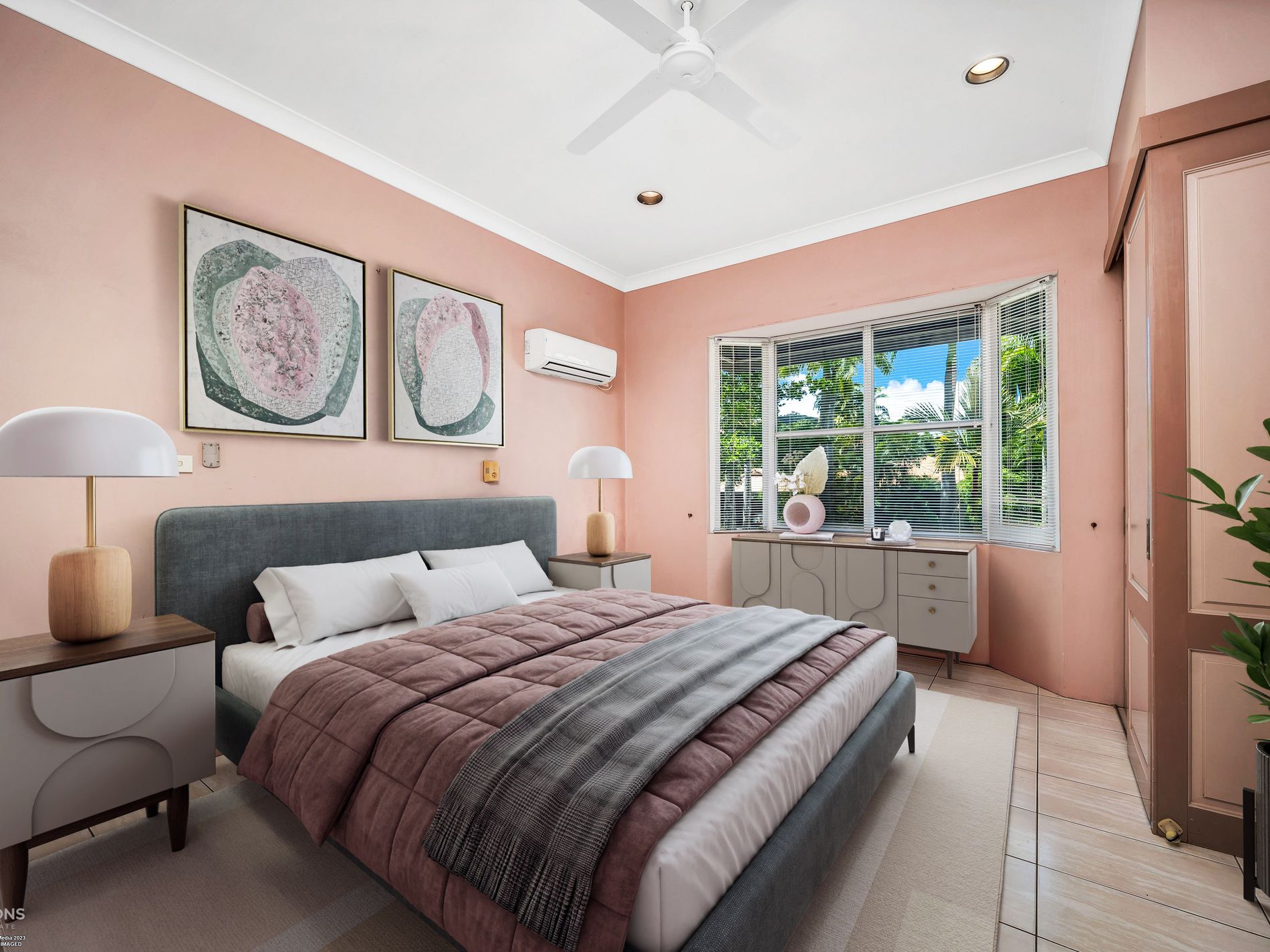 - Four bedrooms, each with direct access to the patio areas
