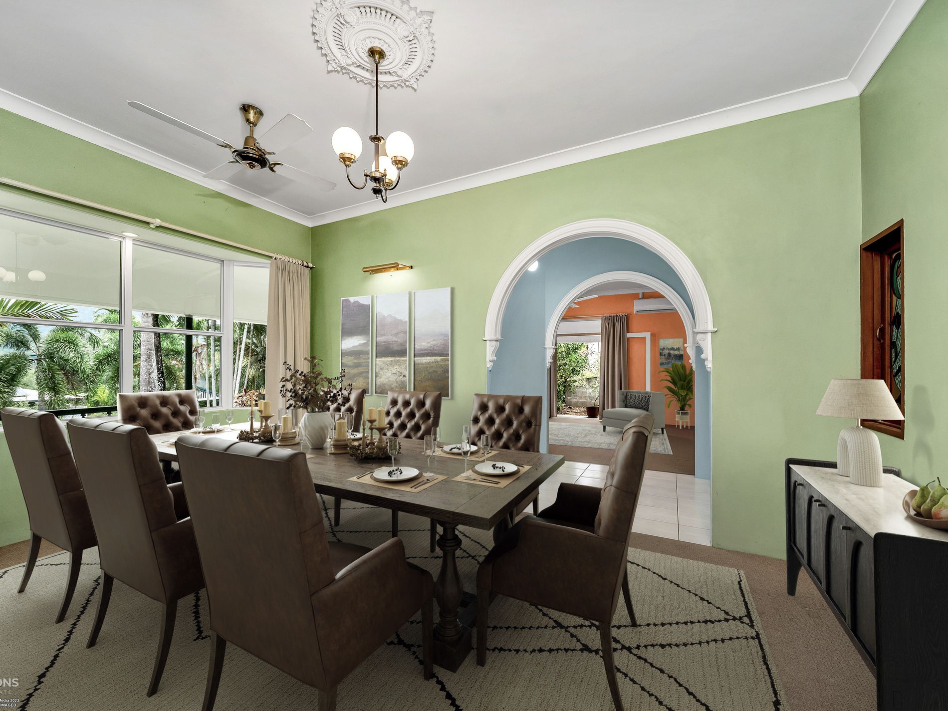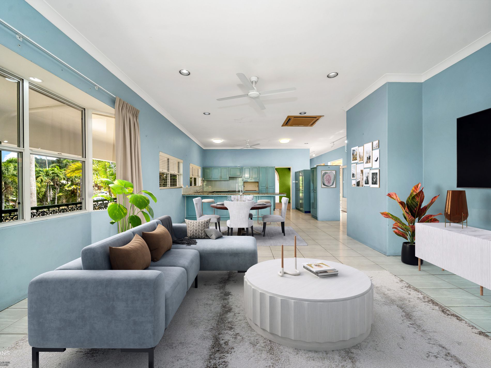 - Open-plan family and dining areas opening directly to the patio