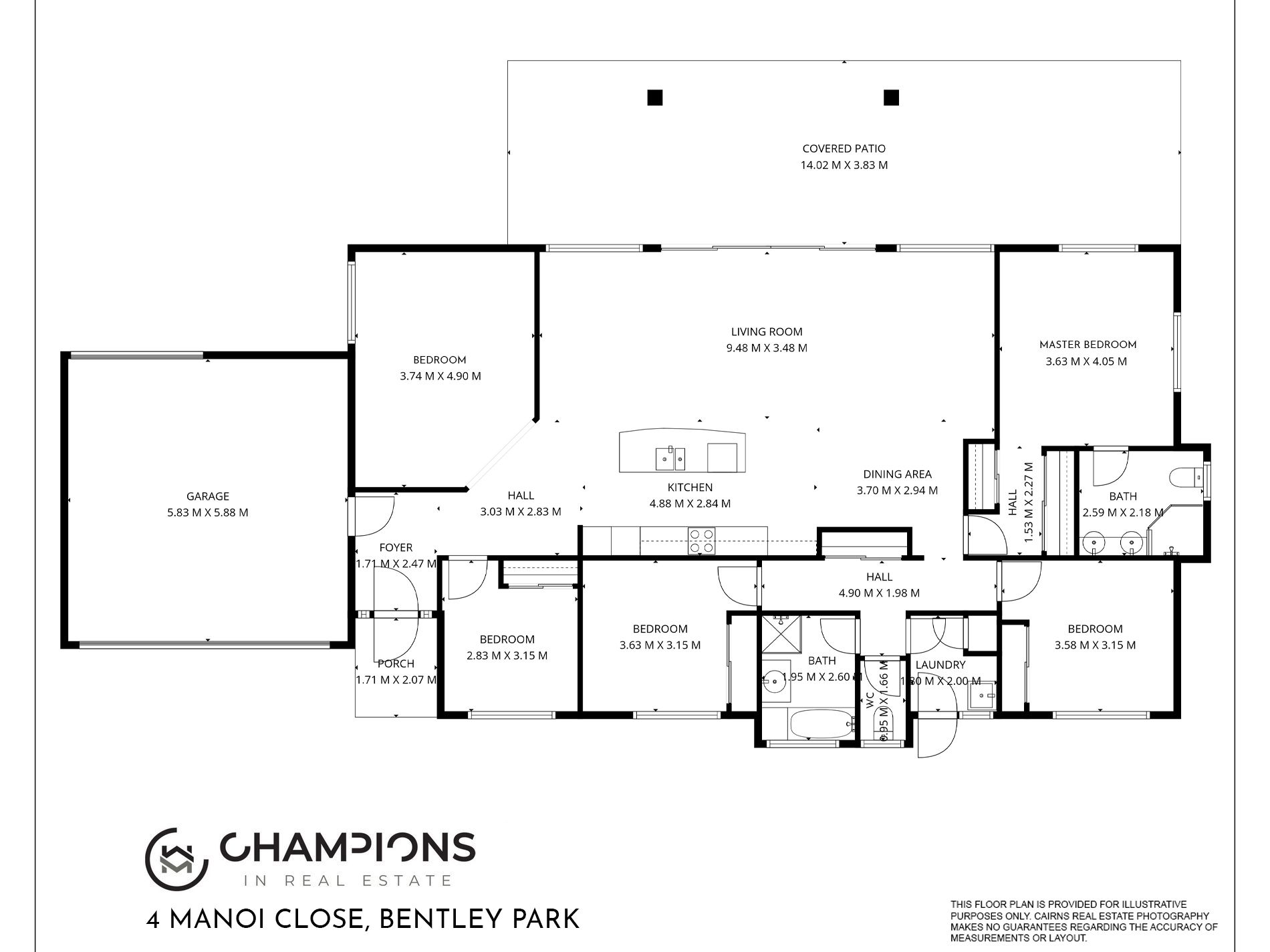 Champions in Real Estate is a licensed real estate agency. We are not licensed builders, inspectors or valuers and the information contained here has been provided to us by third parties. The information is for guidance only. Whilst we make efforts to ensure all information contained herein is gathered from sources we believe to be reliable, we provide no guarantees concerning the accuracy, completeness, or current nature of the information and disclaim all liability in respect of any errors, inaccuracies or misstatements contained herein. It is not intended as building, pest, planning or other advice and should not be construed or relied on as such. Prospective purchasers must undertake their own due diligence, enquiries and undertake various searches to verify the information contained herein. The information has been prepared without taking into account your personal objectives or needs for the property. Before making any commitment of a legal or financial nature you should consider the appropriateness of the information having regard to your circumstances and needs and seek advice from appropriate advisors.