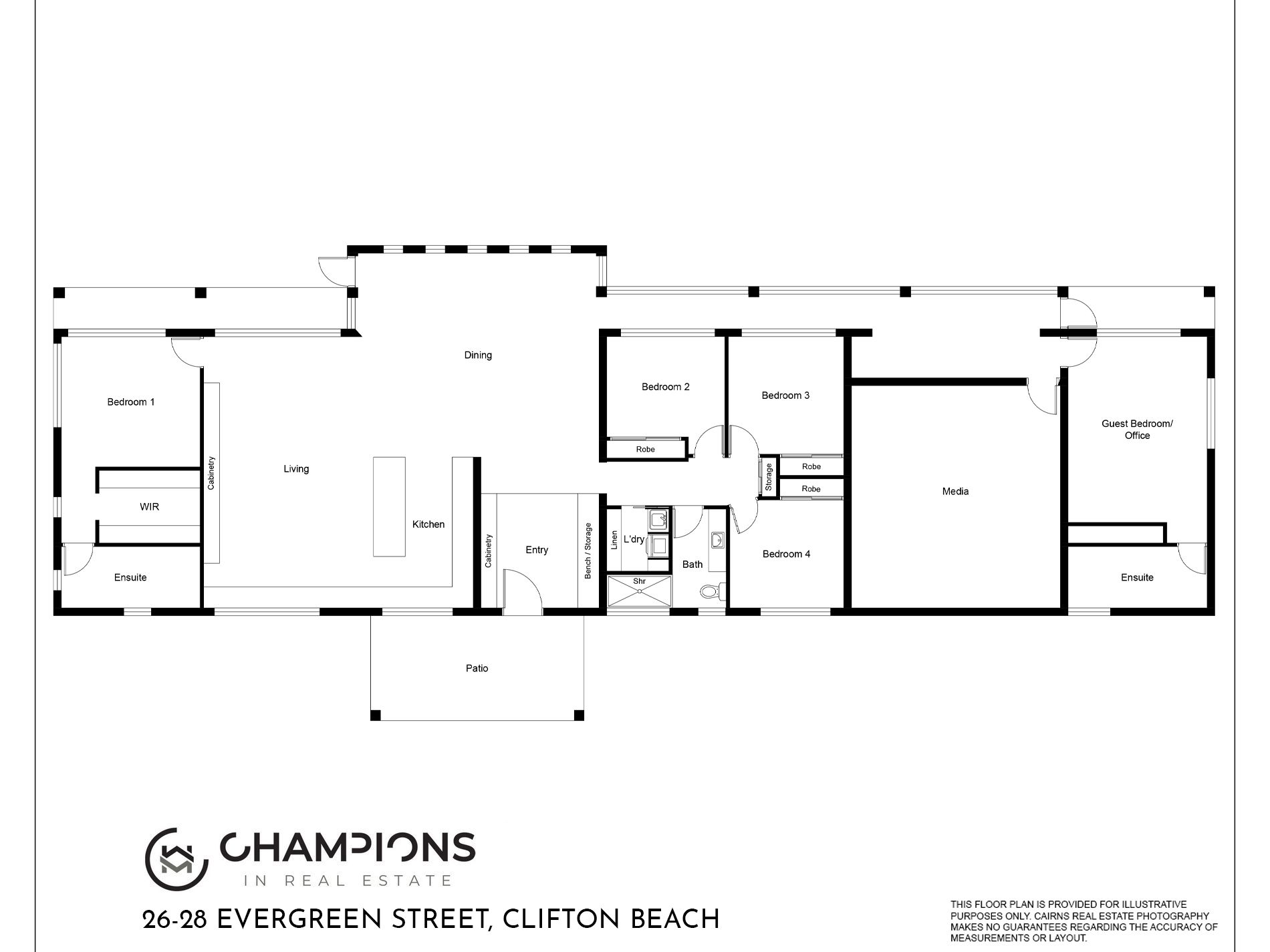 Champions in Real Estate is a licensed real estate agency. We are not licensed builders, inspectors or valuers and the information contained here has been provided to us by third parties. The information is for guidance only. Whilst we make efforts to ensure all information contained herein is gathered from sources we believe to be reliable, we provide no guarantees concerning the accuracy, completeness, or current nature of the information and disclaim all liability in respect of any errors, inaccuracies or misstatements contained herein. It is not intended as building, pest, planning or other advice and should not be construed or relied on as such. Prospective purchasers must undertake their own due diligence, enquiries and undertake various searches to verify the information contained herein. The information has been prepared without taking into account your personal objectives or needs for the property. Before making any commitment of a legal or financial nature you should consider the appropriateness of the information having regard to your circumstances and needs and seek advice from appropriate advisors.